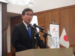 所信表明ということで、少し時間をいただいて、自己紹介や今年度の考え方について述べさせていただきます。ご承知のように、今期入り、新しい年度がスタートしました。会員総数は80名、名誉会員1名を含めて81名という島根県最大のクラブの規模は変わらず維持されています。この大きなクラブの会長に選任していただき、皆様のお力をお借りして、今年度は一生懸命取り組んでいきたいと思います。